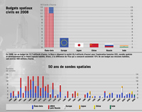 1. Il s'agit du budget consacré au spatial civil. Les dépenses liées au spatial militaire ou commercial ne sont pas prises en compte. 2. Panorama économique du secteur spatial 2007, OCDE.