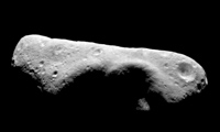 La très faible gravité sur certains astéroïdes facilite, du point de vue énergétique, les opérations d'atterrissage et de décollage. Du coup, la Nasa réfléchit à un projet d'envoi de deux astronautes sur un astéroïde qui passe régulièrement au voisinage – quelques millions de kilomètres – de la Terre. Cette mission servirait de test grandeur nature à un voyage de longue durée tout en utilisant les fusées développées dans le cadre du programme lunaire (ici, l'astéroïde Eros, photographié par la sonde Near en février 2000).