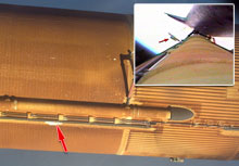 Mais l'inspection du revêtement de la navette permet de relever un autre élément inquiétant : le joint qui sépare les tuiles isolantes du bouclier thermique dépasse de 2,5 cm, à deux endroits, sous le nez de la navette. La Nasa craint que ces imperfections n'entraînent une dangereuse surchauffe de l'engin au moment de son retour dans l'atmosphère terrestre.