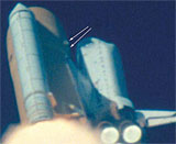 Le second débris, observé sur une vidéo, n’est autre qu’un morceau de mousse isolante provenant du réservoir externe : une pièce imposante mais qui ne semble pas avoir touché la navette.