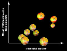 « Nous sommes partis de l'idée qu'il devait y avoir une corrélation entre la métallicité de l'étoile et la teneur des planètes en éléments lourds. », explique Tristan Guillot. Rien d'étonnant lorsqu'on sait que les planètes et leur étoile-mère sont issues du même nuage de gaz et de poussière.