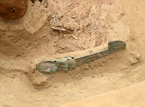 Dans une autre chambre funéraire, c'est une jeune femme de 20 à 25 ans qui a été découverte, en position assise, encore vêtue de brassières constituées de lames en alliage de cuivre et d'argent, et entourée d'offrandes somptueuses, sous forme de dix-sept céramiques, huit pattes de lama décorées de perles, et plus de cent crisoles, petites statuettes en terre cuite destinées à l'accompagner dans l'Au-delà. Autres découvertes importantes, un masque funéraire polychrome réalisé dans un alliage d'or, d'argent et de cuivre, et un « tumi », ou couteau de cérémonie métallique, le premier découvert dans son contexte d'origine.
