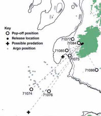 L'article publié fin septembre dans la revue Science ne payait a priori pas de mine. Une page unique, ce qui est court dans une telle revue, un titre peu racoleur*, comme c'est souvent le cas, et un récit plutôt anecdotique pour qui n'est pas spécialiste des anguilles : à l'automne 2006, 22 anguilles équipées de balises étaient lâchées au large de l'Irlande et 14 de ces balises étaient repêchées, quelques semaines plus tard, à 1 300 km de leur point de départ, non loin des Canaries et des Açores. Sur une route qui peut, si l'on suit les courants, mener à l'Atlantique Nord et à une partie de cet océan nommée la mer des Sargasses. Voilà pour le « pitch », comme on dit aujourd'hui, pas de quoi fouetter un chat !