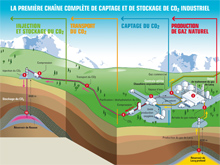 Le «CSC» signifie le captage et le stockage géologique du CO2 (en anglais «CCS» Carbon Capture and Storage). C'est une filière technologique relativement nouvelle, qui n'a qu'une dizaine d'années d'existence. Objectif : réduire la quantité de CO2 dans l'atmosphère. La première étape consiste à capter le dioxyde de carbone émis par les sites industriels (centrales électriques, thermiques, hydrauliques, raffineries, cimenteries, exploitations de pétrole ou de gaz). Plusieurs techniques existent : extraction du CO2 à la source, avant même la combustion (c'est la «pré-combustion») ; séparation du CO2 d'avec les autres gaz dans les fumées de combustion (c'est la «post-combustion») ; utilisation d'oxygène pur (c'est «l'oxycombustion» ) et non de l'air (qui contient de l'azote et de l'oxygène) afin de produire des fumées entièrement composées de CO2. C'est cette dernière technique qui est utilisée à Lacq. Ensuite, vient la phase de transport du CO2 «purifié» : on le comprime, puis on l'achemine près d'un site de stockage. Enfin, on injecte le CO2 comprimé à haute pression (20 à 50 bars) dans le site de stockage géologique choisi, à plus de 4 000m de profondeur. Les types de sites les plus étudiés pour le stockage sont les gisements de pétrole ou de gaz naturel «déplétés» (épuisés) ; les veines de charbon non exploitées ; ou les aquifères salins, c'est-à-dire des nappes d'eau salée très profondes, impropres à la consommation.