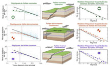 «On a observé que les séries de répliques mettaient plus de temps à s'organiser dans des régimes tectoniques en extension* que dans des régimes tectoniques en compression, lorsque les blocs terrestres se chevauchent**», précise Clément Narteau, géophysicien à l'Institut physique du Globe de Paris (IPGP).