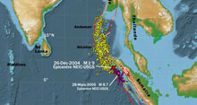 Une analyse statistique des ondes enregistrées aux États-Unis et au Japon, lors de séismes, et répertoriées dans des catalogues de sismicité, s'est révélée fructueuse. Les chercheurs ont en effet observé un lien entre le contexte tectonique local (aléa sismique) et la manière dont se distribue dans le temps les répliques, ces petits tremblements de terre qui font suite à un gros séisme.