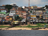Direction Manaus, capitale de l'Amazonas, où se concentrent pratiquement toutes les activités économiques et industrielles de l'État. Ici, les usines et les immeubles façonnent la ligne d'horizon et côtoient toujours d'un peu plus près la forêt. Bientôt, un immense pont traversant le Río Negro va même relier ce centre névralgique à la rive opposée, que l'on mettait jusqu'alors deux heures à rejoindre en bateau. De l'autre côté, vivent les membres de la communauté Saracá.