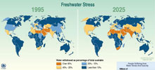 D'ici 2025, la quantité d'eau disponible par personne pourrait tomber à la moitié du niveau actuel – qui est déjà deux fois plus bas que celui de 1960. D'ici 2050, selon les Nations Unies, entre 2 et 7 milliards d'êtres humains seront confrontés à une pénurie d'eau. Parmi les régions les plus menacées, on trouve notamment le bassin méditerranéen (en particulier l'Afrique du Nord) et la péninsule arabique.