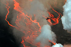 « On a vu des fontaines de lave largement dépasser le rempart [NDLR : la caldera qui entoure le volcan principal]. On peut ainsi estimer qu'elles s'élevaient à plus de 200 mètres de hauteur : je n'avais jamais vu ça auparavant, s'exclame Thomas Staudacher. »