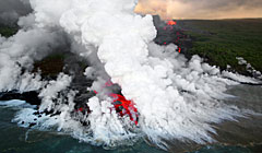 Depuis plusieurs années, le cinéaste Alain Mussard et Jean-Pascal Quod, directeur de l'ARVAM, plongent sur les coulées de lave pour étudier comment la vie – les algues, les coraux… – se réapproprient ces nouveaux fonds. Le 8 avril, les deux hommes envisagent ainsi de plonger sur les dernières coulées. « Mais impossible de mettre le pied dans l'eau, explique Jean-Pascal Quod, l'eau dépassait les 45°C, et les coulées de lave irrégulières présentaient un grand danger. En revanche, nous avons été surpris de constater une véritable hécatombe à la surface de l'eau : des centaines de poissons morts, un phénomène que nous observons pour la première fois à la Réunion. »