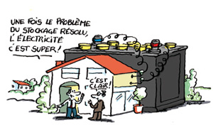 L’électricité se stocke très difficilement, c’est pourquoi à chaque instant, il faut que la production corresponde à la demande. Les gestionnaires du réseau demandent donc aux producteurs d’énergie de mettre en route ou d’arrêter leurs productions en fonction de la demande. Il existe néanmoins quelques moyens de stockage, essentiellement grâce aux centrales hydroélectriques possédant un bassin amont et un bassin aval : on pompe l’eau vers le bassin amont lorsque la demande en électricité est basse, et on turbine vers l’aval lorsque la demande est forte. On appelle cela des stations de transfert d’énergie par pompage (Step). Il existe aussi des expérimentations de stockage de l’électricité à l’aide de batteries sodium-soufre (projet Gerri à l’île de la Réunion), mais le coût reste élevé.