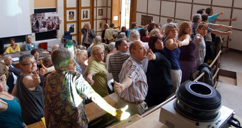 S’ensuivent alors plusieurs autres expériences durant lesquelles tout l’amphithéâtre est sollicité : séance de pendule réagissant à nos pensées, contorsions censées être impossibles… Face aux démonstrations de ce prêcheur allemand, une étrange ambiance – quasi mystique – semble envahir la salle.