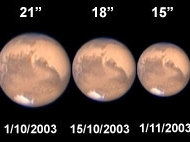 Le 27 août 2003, à 9h51'14'' TU, Mars et la Terre n'étaient distantes que de 55 758 millions de kilomètres. Un tel rapprochement ne s'était pas produit depuis 59 618 ans et il faudra désormais attendre 23 698 ans pour voir la planète rouge d'aussi près.