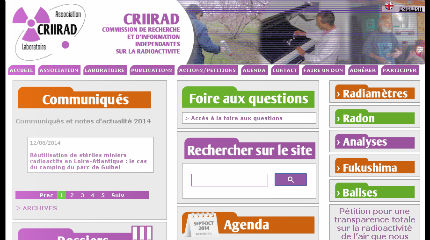 Commission de Recherche et d'information Indépendante sur la Radioactivité (CRIIRAD)Association indépendante, elle informe depuis 1986 sur les pollutions radioactives et les risques liés au nucléaire. Actualités, dossiers et publications apportent une richesse à ce site à forte tendance antinucléaire.criirad.org
