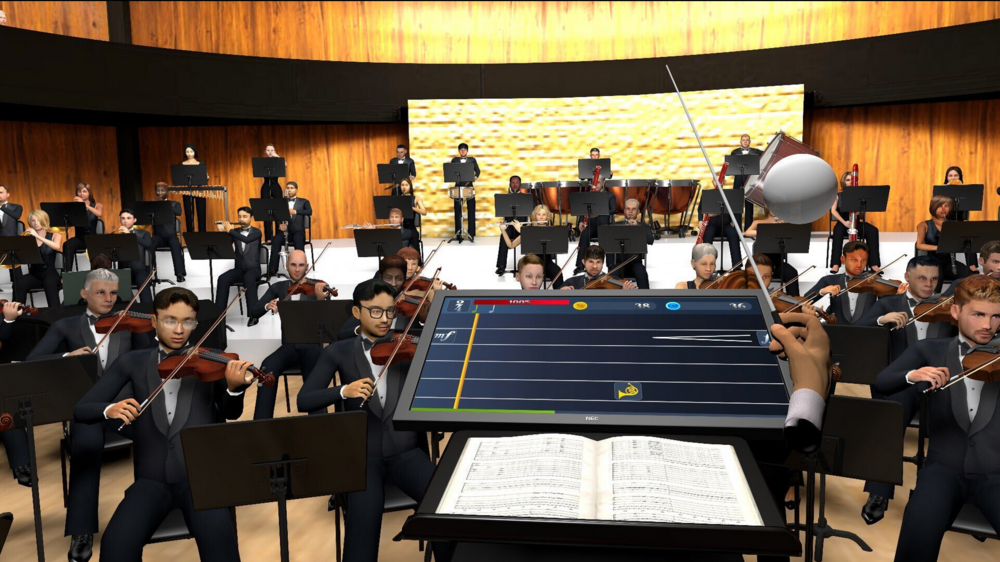 Découvrez Maestro VR, le jeu où vous apprendrez à diriger un orchestre complet en réalité virtuelle en utilisant de véritables techniques de direction grâce au système de suivi des mains !