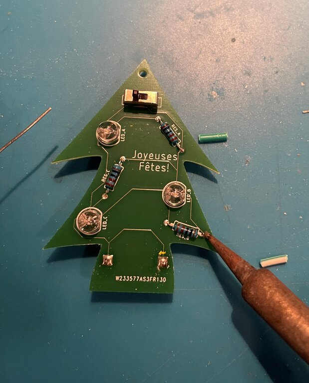 Pour Noël, quoi de mieux que créer sa propre décoration électronique?Nous vous mettons à disposition tout le matériel et les outils nécessaires : ensuite c'est à vous d'apprendre à souder des composants électroniques sur un circuit imprimé, qui permettra de faire clignoter des LED colorées.