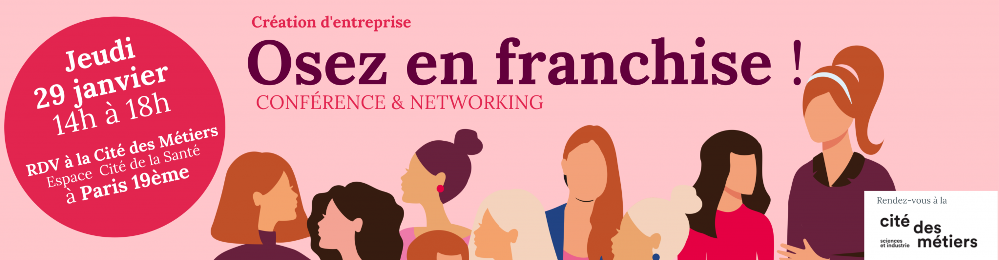 Le plus compliqué est d’avoir la bonne idée et la transformer en business… Avez-vous pensé à la franchise? Une solution «clé en main» qui vous permet de devenir cheffe d’entreprise sans partir de zéro tout en étant accompagné (e). Pour découvrir ce mode de création simplifié, rendez-vous à l’évènement «Osez en franchise» qui se déroulera le jeudi 29 janvier de 14h à 18h à l’espace «Cité de la Santé» dans la Cité des métiers de Paris. Si vous êtes salariée en réflexion, porteur de projet, demandeur d’emploi et que l’envie est de vous lancer, cet évènement est pour vous.