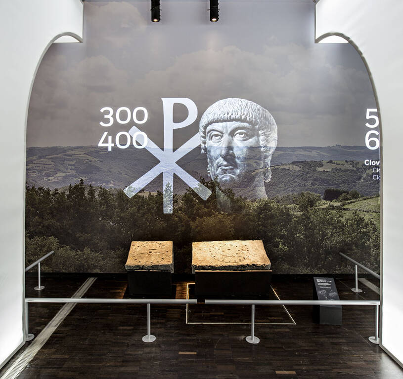 A l’entrée, une grande Galerie du Moyen Âge jalonnée de quelques objets emblématiques immerge le visiteur dans l‘imagerie classique du Moyen Âge et lui donne les repères indispensables à la visite. Une grande fresque chronologique propose une sélection de dates marquantes et d’événements clés, depuis la mise en place des fondements dogmatiques du christianisme (la Trinité), en 325, jusqu’à la découverte du Nouveau monde en 1492. Récapitulant les principaux faits historiques, culturels, religieux, artistiques, scientifiques et techniques de l'époque un peu partout dans le monde, elle permet de situer Clovis et Charlemagne, les Capétiens et les Carolingiens, Attila et Mahomet… et donne également une idée de ce qui se passe au même moment en Chine, au Mexique ou au Moyen Orient.