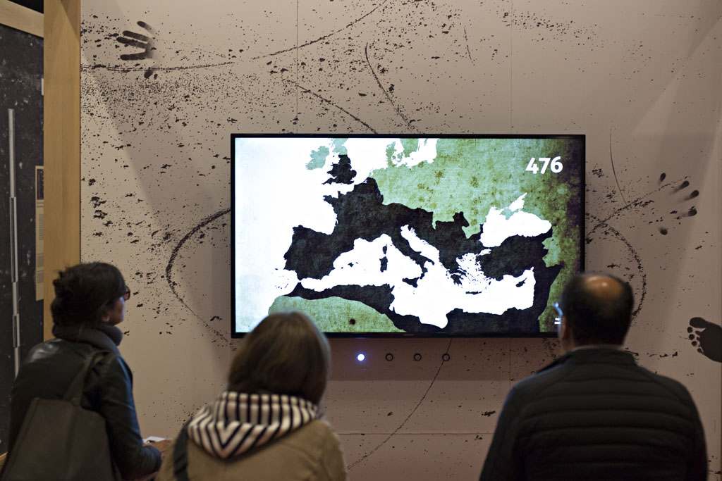 Elle est composée de six îlots thématiques qui proposent repères temporels, maquettes, cartes, manipes, jeux, vidéos et multimédias interactifs, ainsi que de nombreux objets provenant de musées d'art.